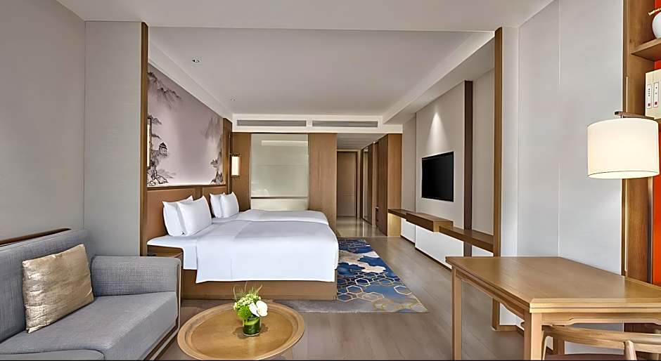 Payment is flexible with cash accepted and a wide range of cards including Diners Club, Mastercard, JCB, Discover, American Express, Visa, Carte Blanche, and UnionPay. A variety of room options are available, from Deluxe and Standard King to suites like Yujiang Suite and Yuyue Suite, with beds ranging from king-size to twin configurations for comfortable stays.